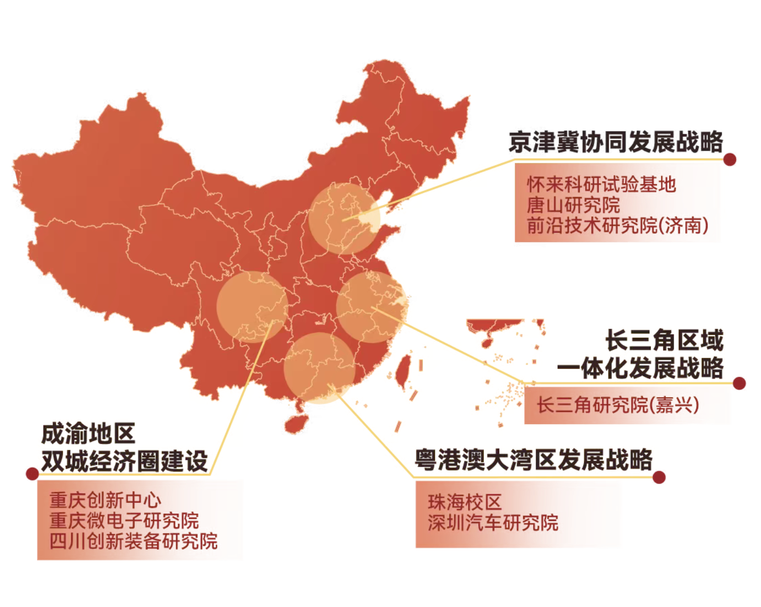 学校以优势学科对接社会优质资源,整合创新要素,构建产学研用融合创新体系,在泛京津冀、长三角、粤港澳大湾区、成渝经济圈、中原经济区等区域布局研究机构,可在珠海、嘉兴、重庆、唐山、济南、郑州、深圳等异地研究院开展科学研究工作,为海内外青年人才提供更广阔的职业发展平台。