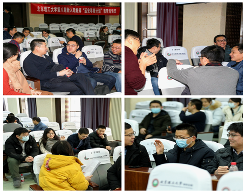 此次培训特邀名师大家开展专题讲座。北京青年榜样、首都精神文明建设奖获得者、机电学院副院长黄广炎教授以《浅谈青年教师成长的四个历程》为题开展“聆听师道”专题分享;管理与经济学院赵洱岽教授以《育心明德、道术相济,建构信息技术与教育教学相融合课程思政之路》为题作课程思政建设专题报告;延安大学杨延虎教授、延安精神研究中心主任郝凤年分别带来题为《中国共产党百年奋斗历程及基本经验》《延安精神及其时代价值》的直播讲座。通过系列讲座学习,新入职教师们坚定了理想信念,启迪了育人智慧,深刻领悟了延安精神的内涵实质,纷纷表示将做红色基因的坚定传承者,把延安精神内化为教书育人的不竭动力。