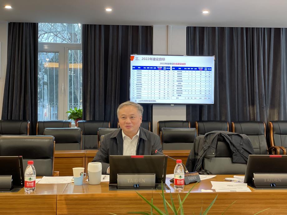 魏一鸣在总结时指出,学校2021年高层次人才增量首次破百,圆满完成队伍建设各项任务是各单位领导及专家齐心协力、共同努力的结果,并对2022年队伍建设提出三点意见:
